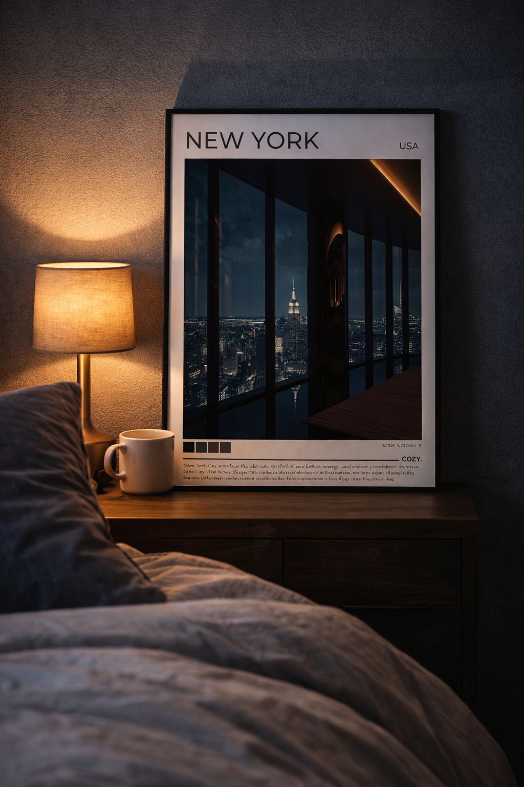 “The poster looks even better in real life. Minimal, aesthetic and high quality. COZY brings a calm and premium atmosphere to my room.